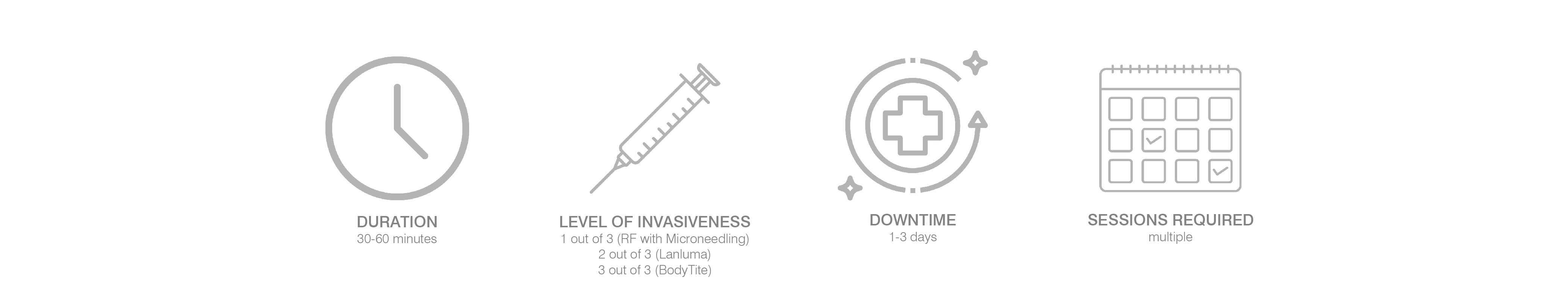 The level of invasiveness that is preferred will determine the downtime required after treatment. BodyTite is the most invasive and requires only a few days recovery. The non-invasive treatments may require multiple sessions to achieve the required results.