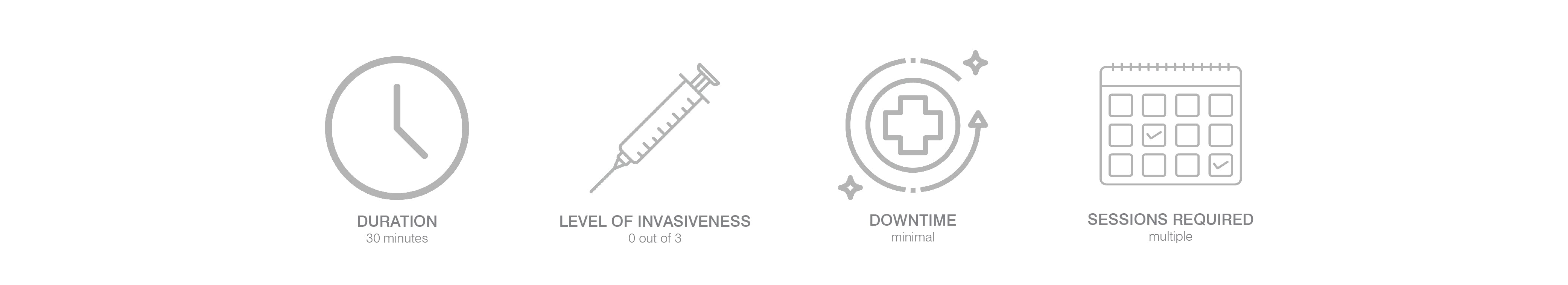 A warm flicking sensation (like the snapping of a rubber band) can be felt during treatment. The intensity of the sensation varies depending on the treatment area but any discomfort is of a manageable level.