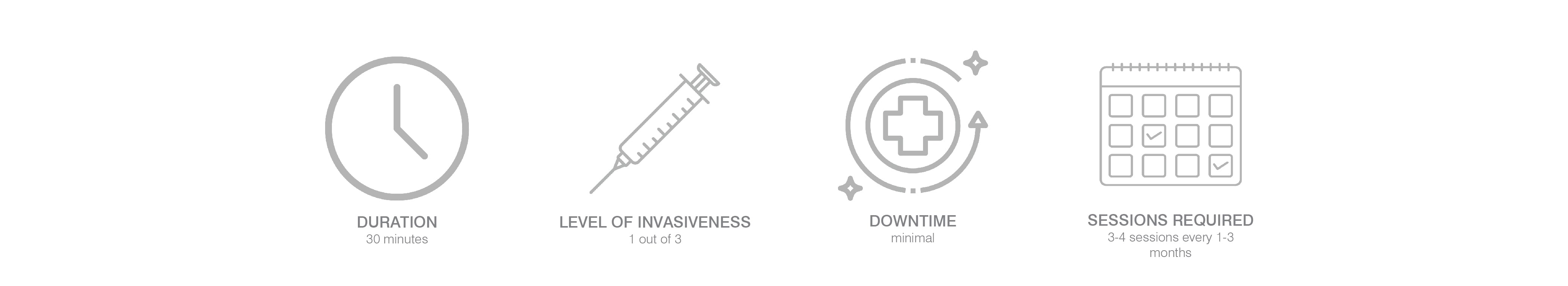 Usually we recommend 3-4 sessions, every one to three months, depending on the treated skin conditions, are needed to provide significant results.